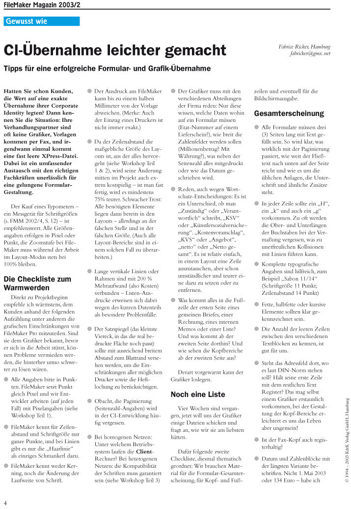Egal ob FileMaker Profi, Anfänger oder Anwender – allen bietet das FileMaker Magazin mit seinen Beiträgen pfiffige Tipps, interessante Dokumentationen, nützliche Methoden und Hintergrundwissen. Weiter »